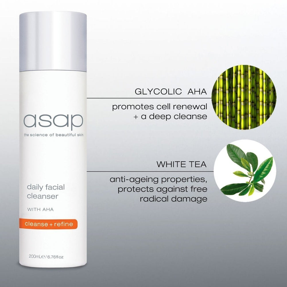 - Incorporate Asap Daily Facial Cleanser into both your morning and evening skincare routines for optimal results.