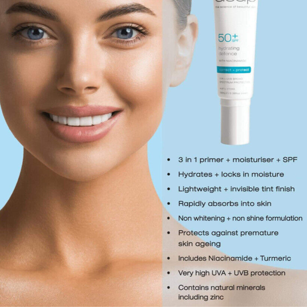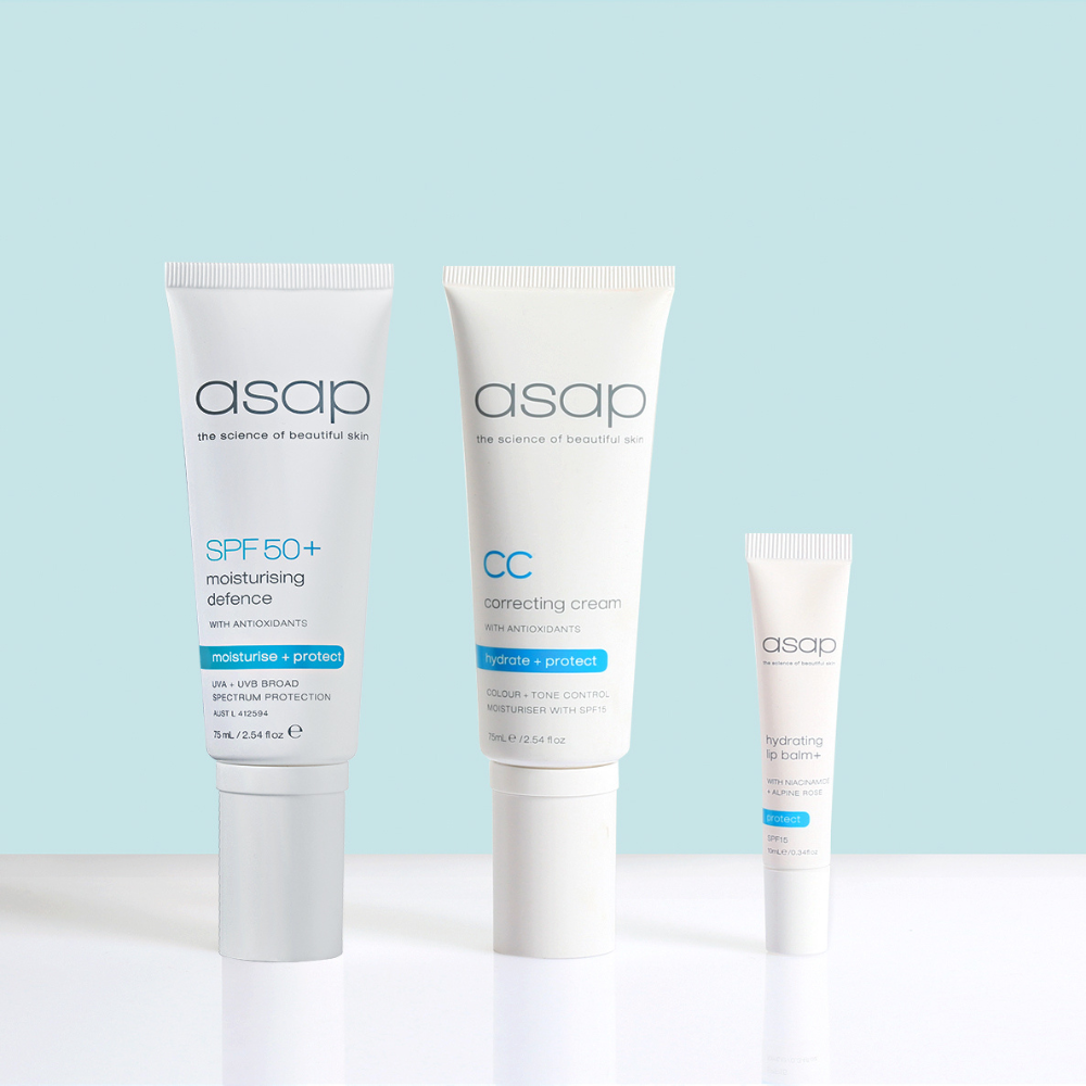 Introducing Asap Moisturising Defence SPF50+, a new generation of skincare that combines very high UVA and UVB protection with intense hydration and a seamless primer for makeup.