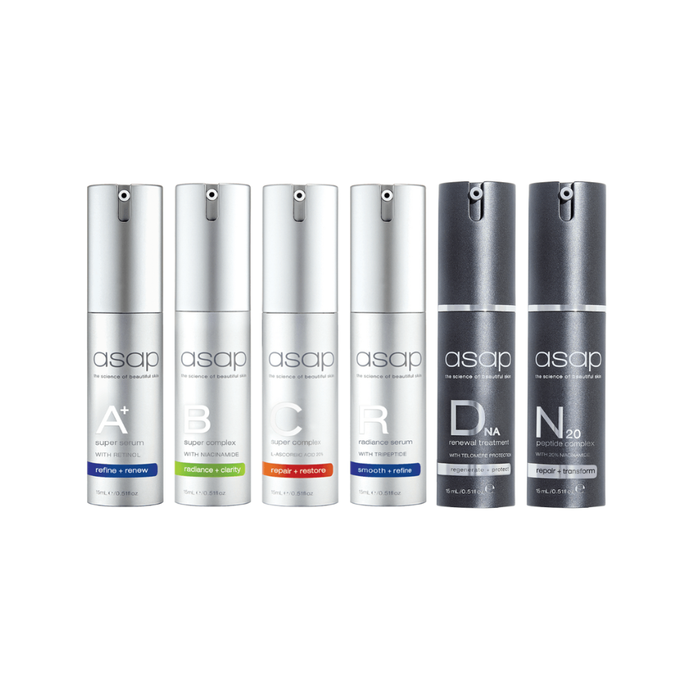 From powerful antioxidants to advanced peptides, this collection combines asap's most effective active ingredients to combat visible signs of ageing while providing essential hydration and radiance to tired skin. Perfect for creating a tailored skincare routine that addresses multiple concerns or as a luxurious gift set.