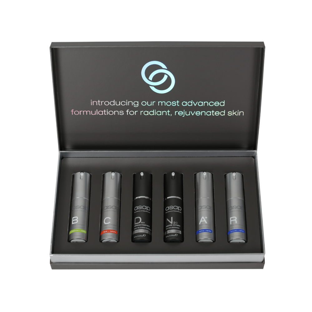 Elevate your skincare routine with the ultimate collection of asap's most potent serums. This comprehensive set features six innovative formulations, each designed to deliver dramatic and transformative results.
