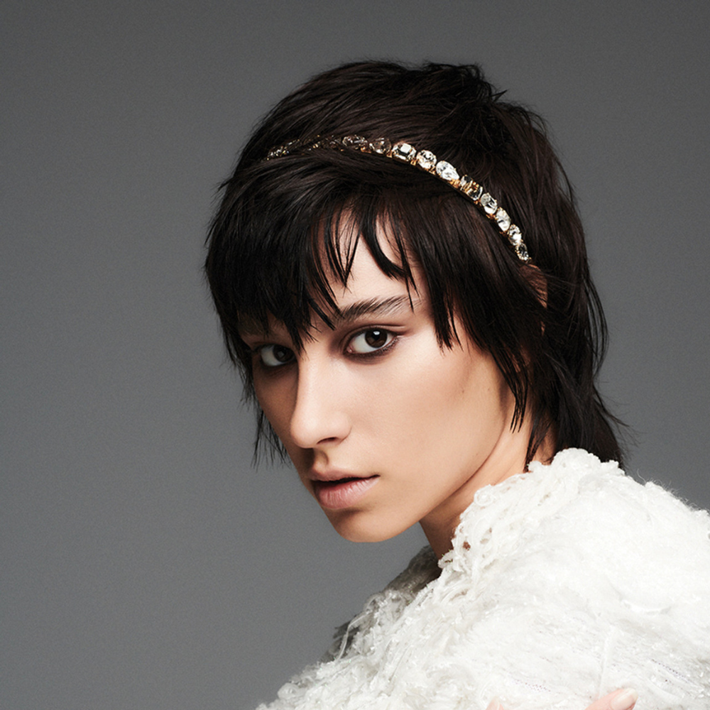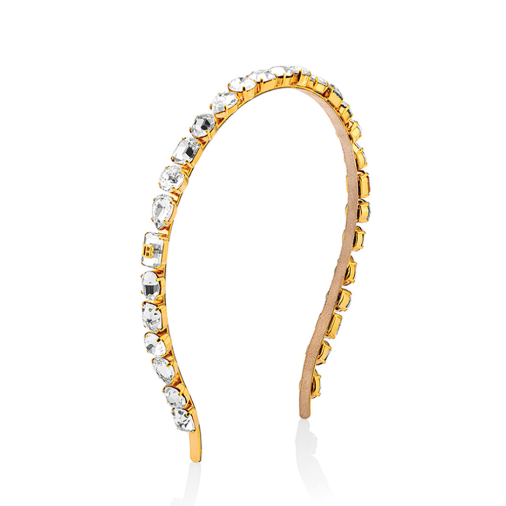 The 18K gold-plated headband serves as an opulent backdrop for the shimmering crystals, while the nude coloured nubuck finishing on the inside provides extra grip to ensure the headband stays securely in place. Each crystal is carefully selected and positioned to maximise their enchanting effect when worn.