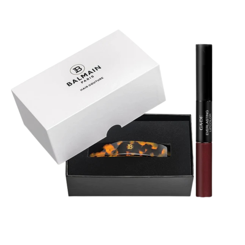 Embrace timeless French sophistication with this exclusive Beauty Affairs bundle pairing the exquisite Balmain Hair Barrette Medium with a complimentary GA-DE Everlasting Lip Color. This meticulously handcrafted barrette represents the pinnacle of hair accessory design, featuring an authentic French clip mechanism and Balmain's coveted 14K gold-plated "B" emblem.
