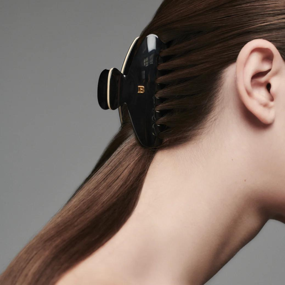 The large claw clip of Balmain Hair is an essential French hair accessory especially designed for long, thick hair. The large claw clip easily holds all hair together and provides perfect grip on long, thick hair.