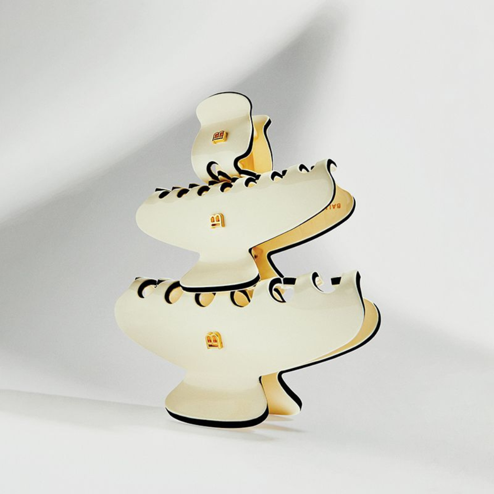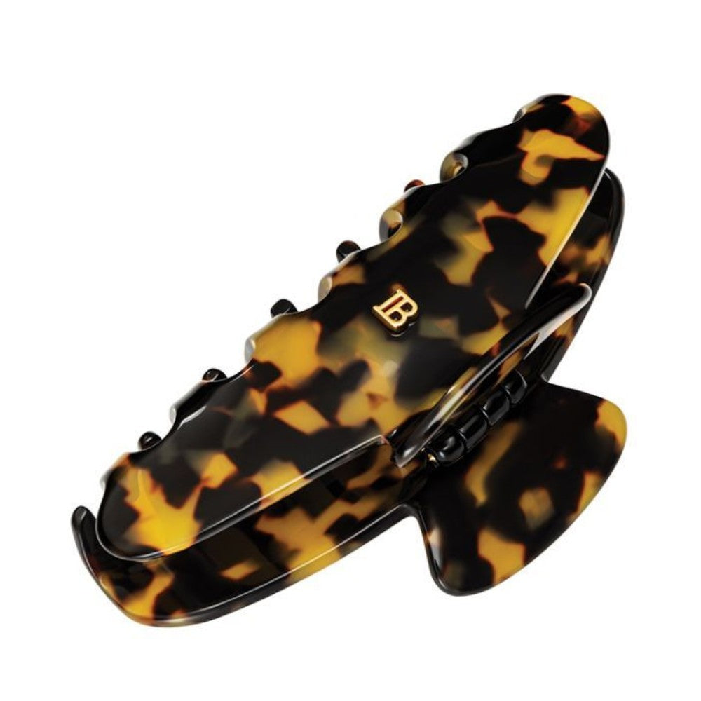 A large handcrafted claw clip made from durable cellulose acetate designed with the Balmain’s signature 18K gold plated “B” logo. The extremely strong yet flexible material is hypoallergenic and gentle to the hair and scalp. The large clip is especially designed for thick and long hair and works as a real statement piece when clipped into the hair.