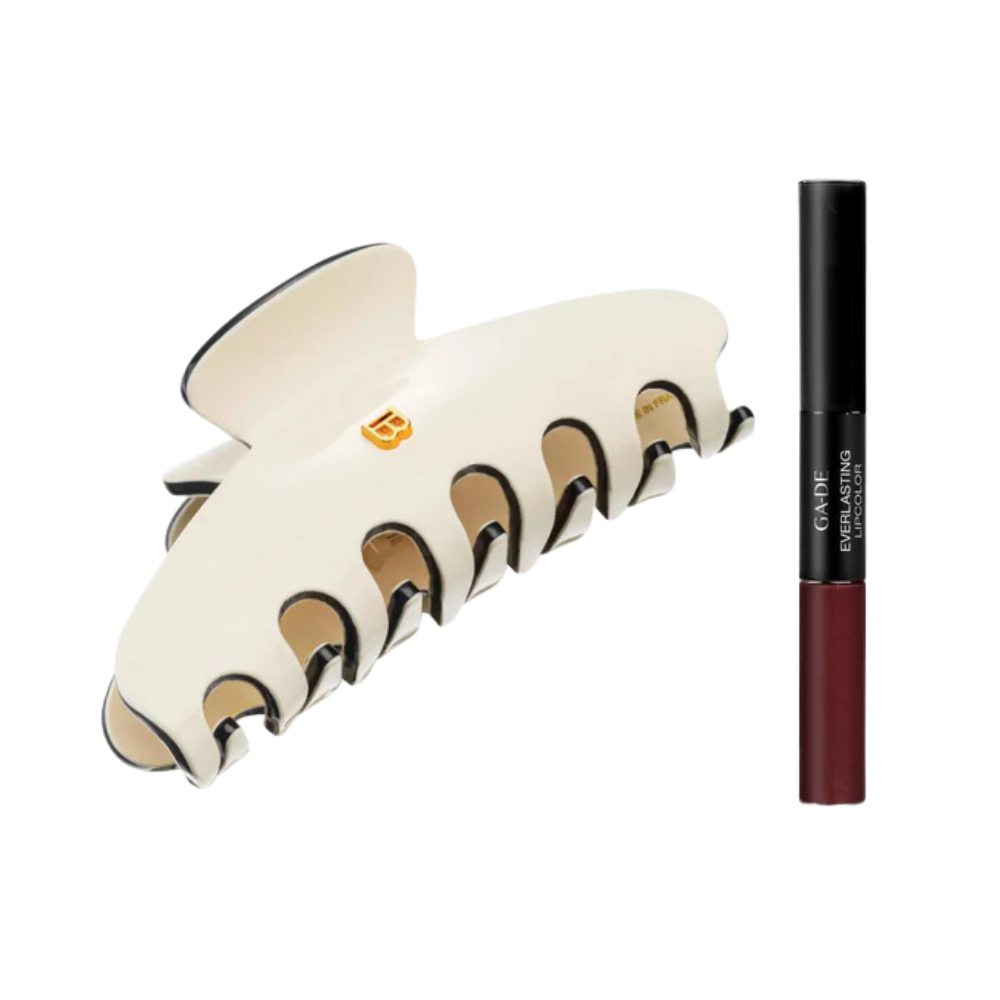 Transform your hair styling routine with this exclusive Beauty Affairs bundle featuring the luxurious Balmain Hair Pinch Clip Large and a complimentary GA-DE Everlasting Lip Color. The handcrafted claw clip showcases Balmain's signature 18K gold-plated "B" logo and is expertly designed from durable cellulose acetate for superior hold without damage.