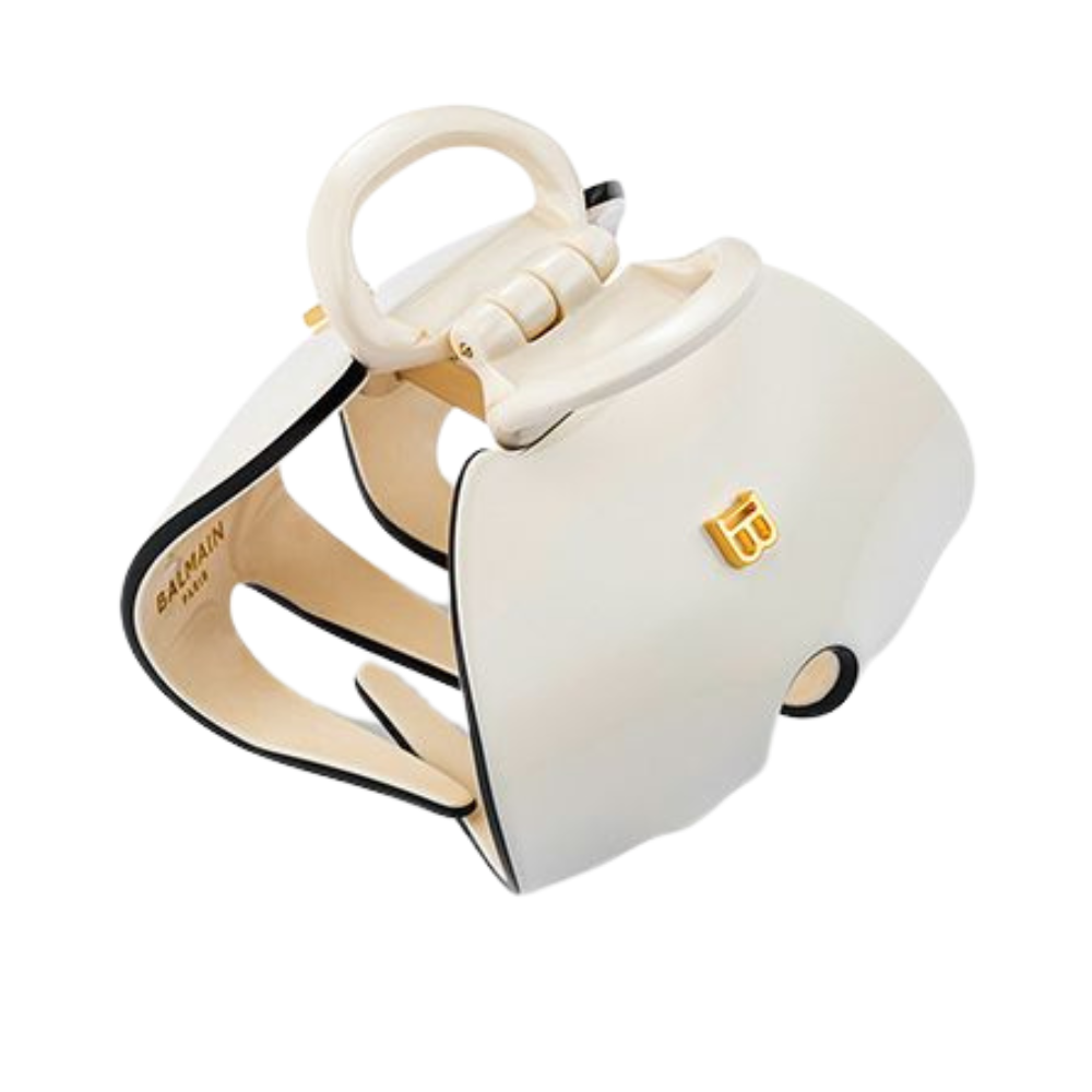 The Balmain Jumbo Hair Pinch Clip is the epitome of luxury and functionality, crafted for those who appreciate elegance in their everyday styling. This oversized handcrafted claw clip is made from durable cellulose acetate and beautifully accented with Balmain's signature 18K gold-plated 'B' logo against a sophisticated white ivory edge.
