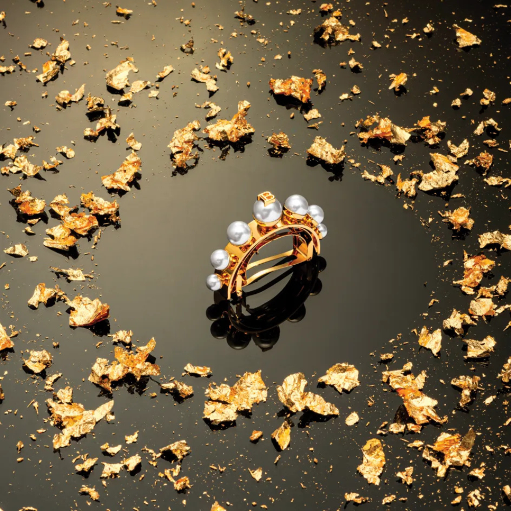 - 18k gold-plated finish with cascading pearls for timeless luxury
