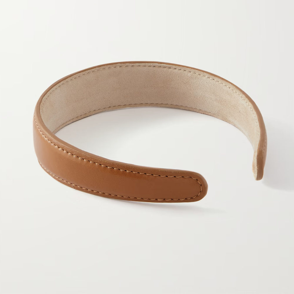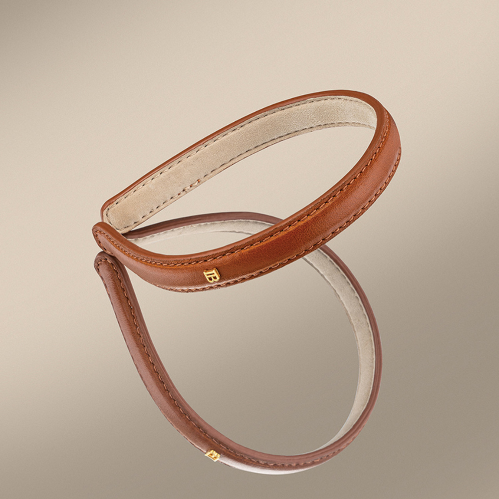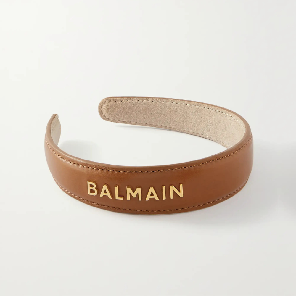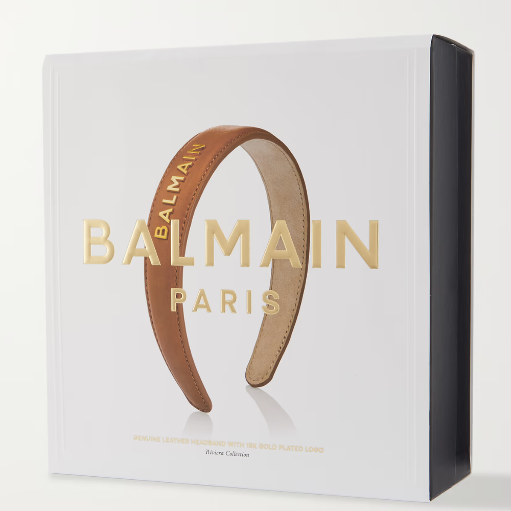 The Balmain Riviera Luxury Leather Headband is an all-time classic hair accessory that takes inspiration from the French Riviera. Crafted from genuine cognac-coloured Napa leather and adorned with an 18K gold Balmain Hair logo, this elegant headband features a nude-coloured nubuck inside to provide extra grip onto the hair.