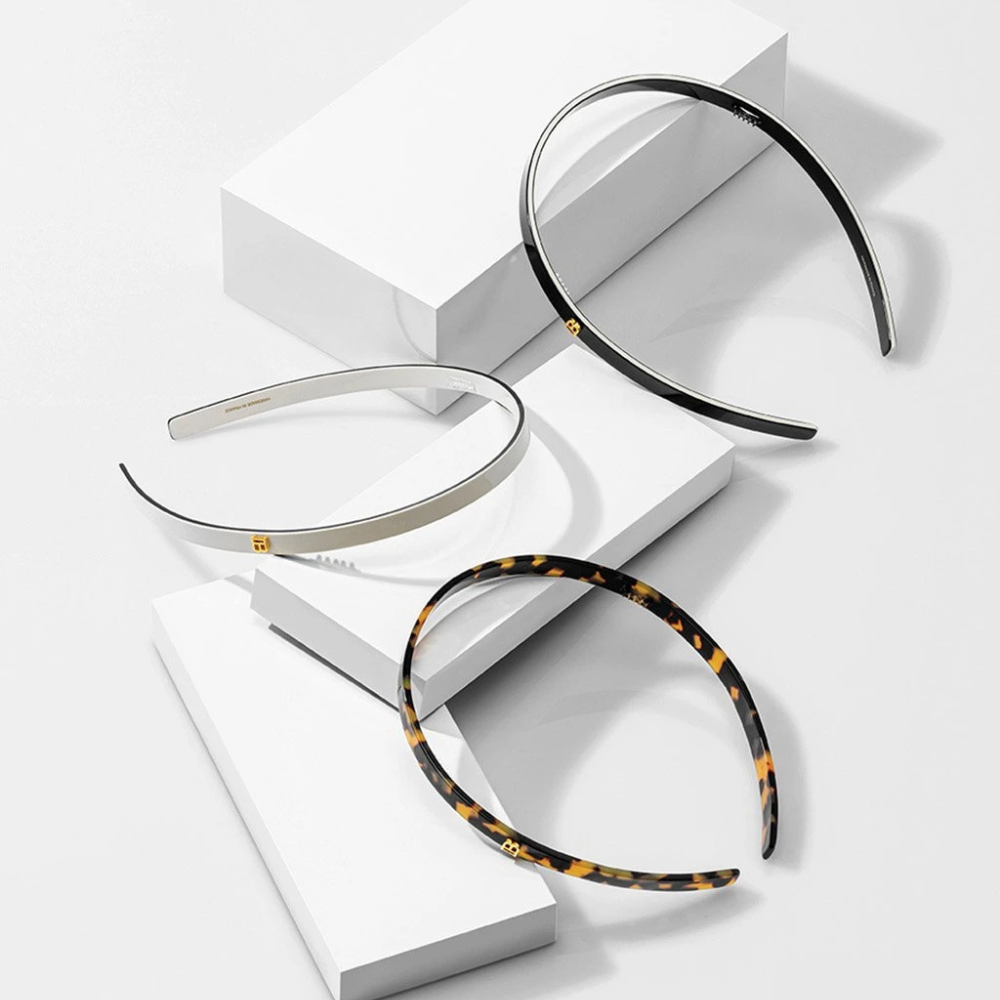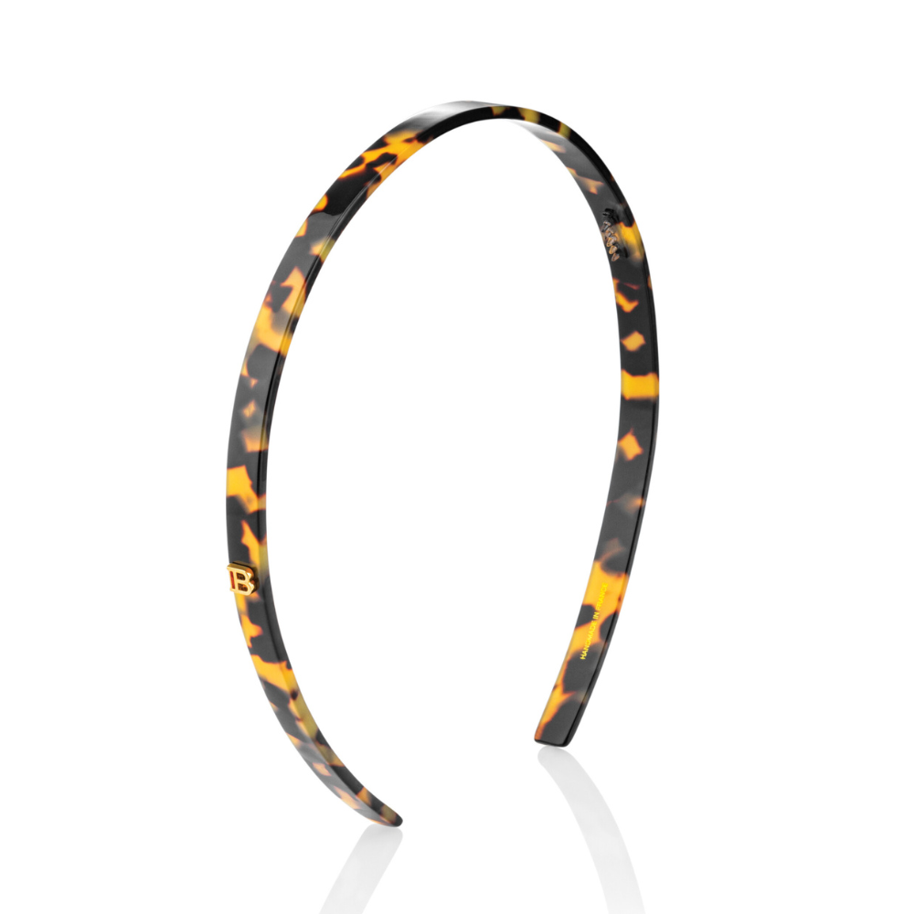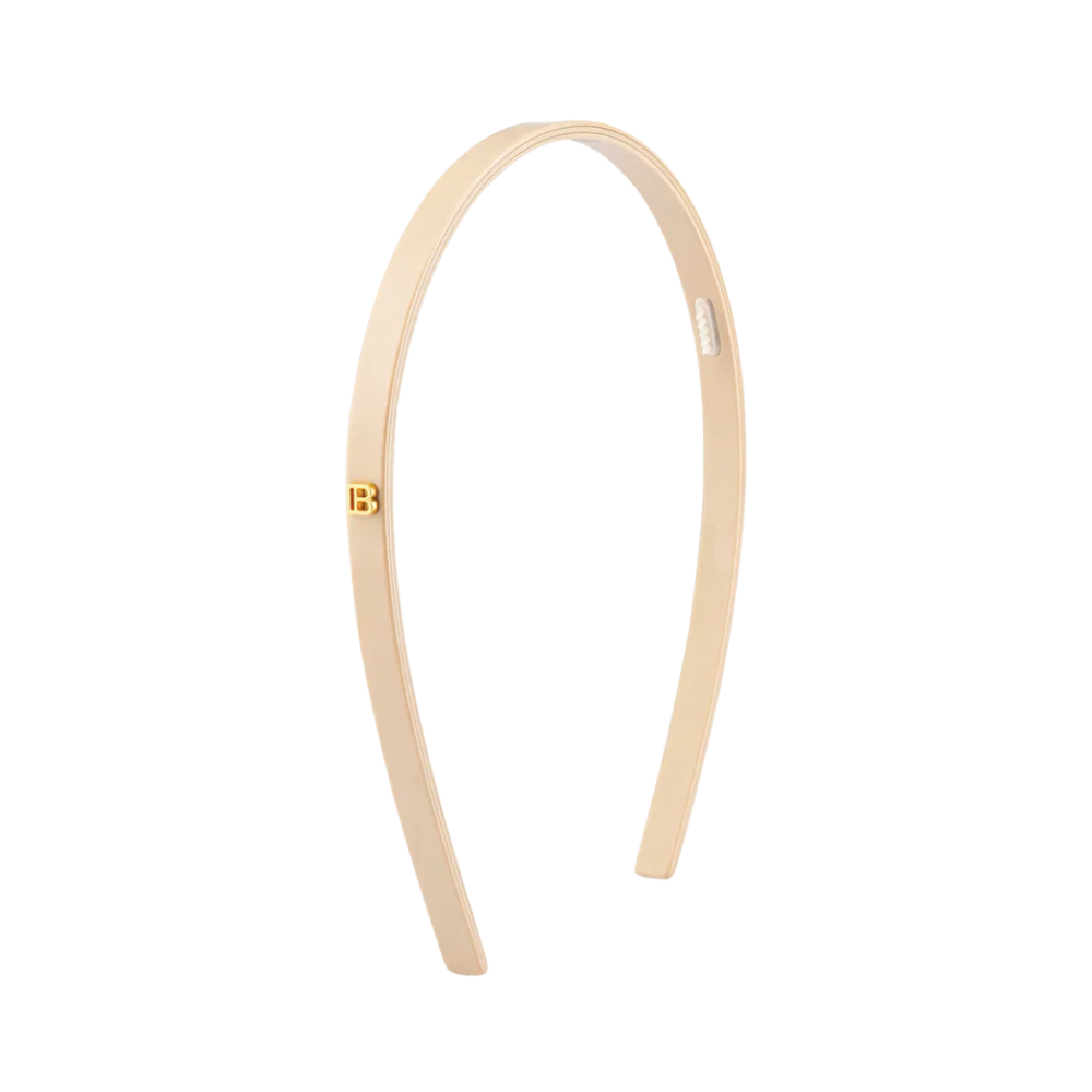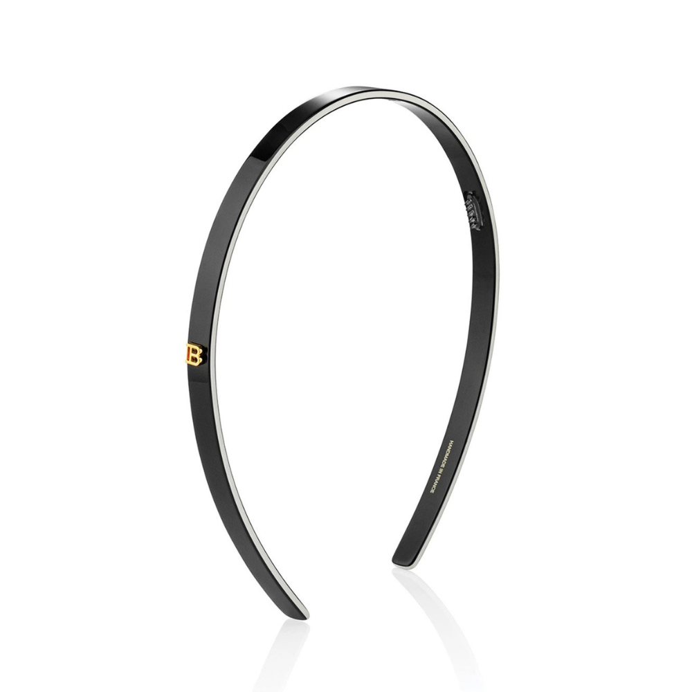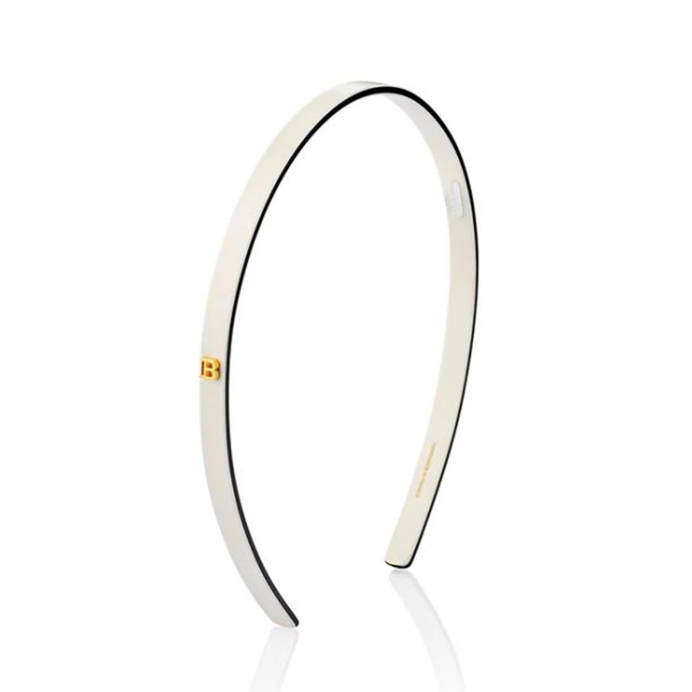The Balmain Small Headband is a handcrafted accessory made from durable cellulose acetate, showcasing Balmain's signature 18K gold-plated 'B' logo. This elegant headband features a sophisticated ivory white colour on the edges, adding a touch of refined luxury to any hairstyle.