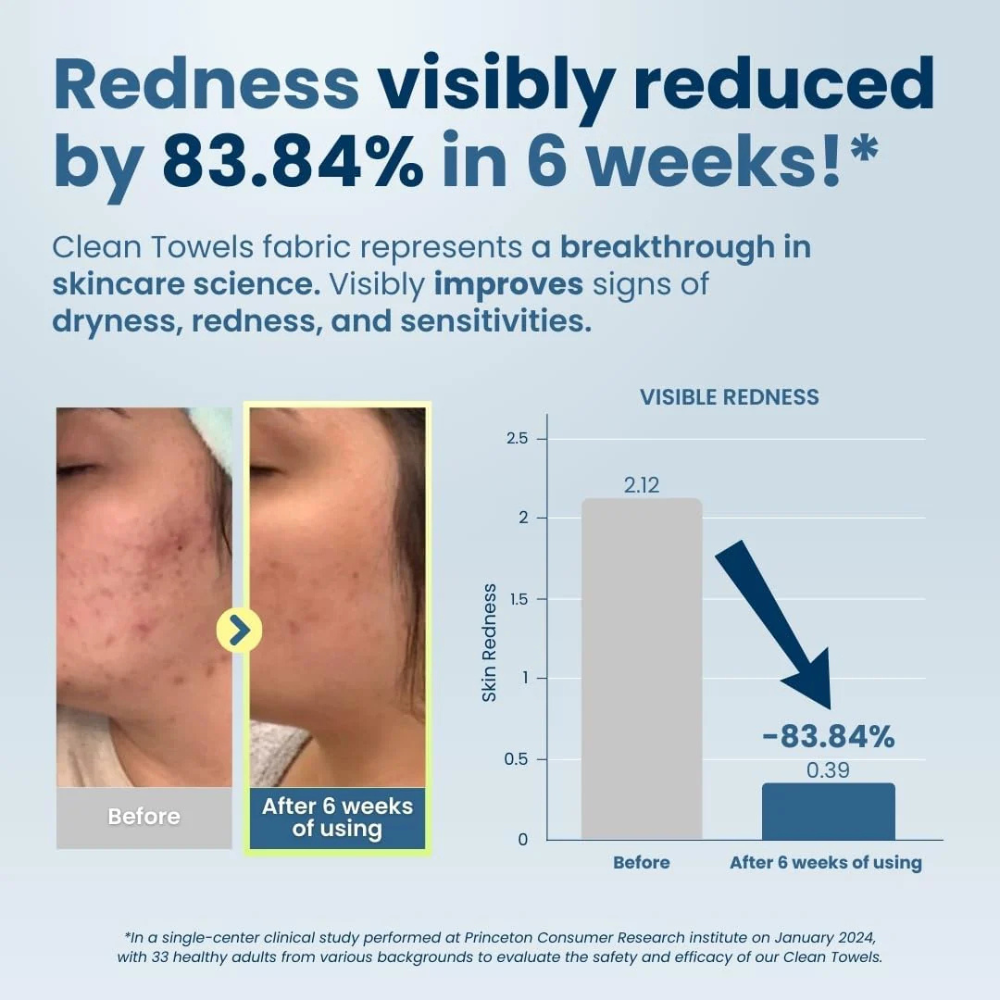 Celebrated for their exceptional durability and ultra-soft texture, Clean Towels ensure you always have a fresh, clean towel at hand, enhancing your skincare regimen's effectiveness. Whether wet or dry, their versatility and interchangeability make them an indispensable part of daily skincare and household routines, promoting visibly clearer, less irritated skin, and maintaining a healthy skin barrier.