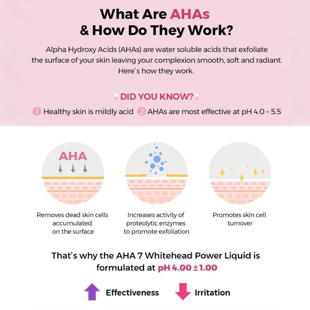 • Contains 7% Glycolic Acid to effectively target whiteheads and rough texture