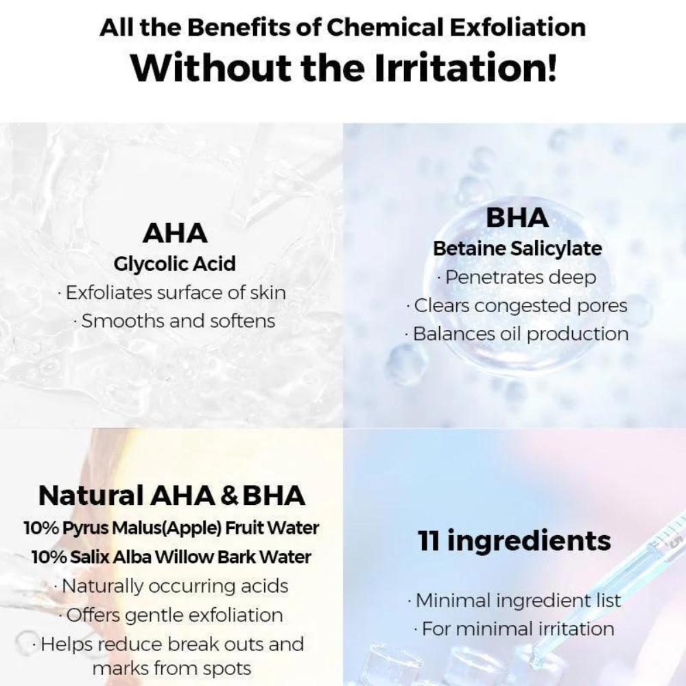 This innovative toner combines the power of AHA, BHA, and purifying botanical ingredients to deeply cleanse, exfoliate, and hydrate your skin.
