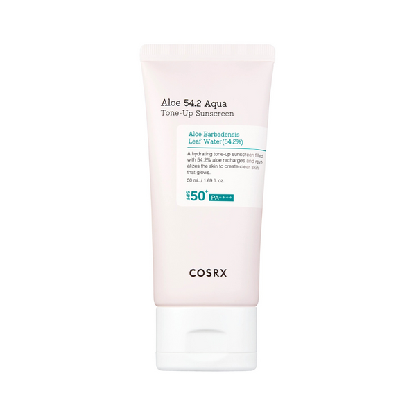 COSRX Aloe 54.2 Aqua Tone-Up Sunscreen is a multitasking formula that provides high-level UV protection while delivering skin-soothing benefits.