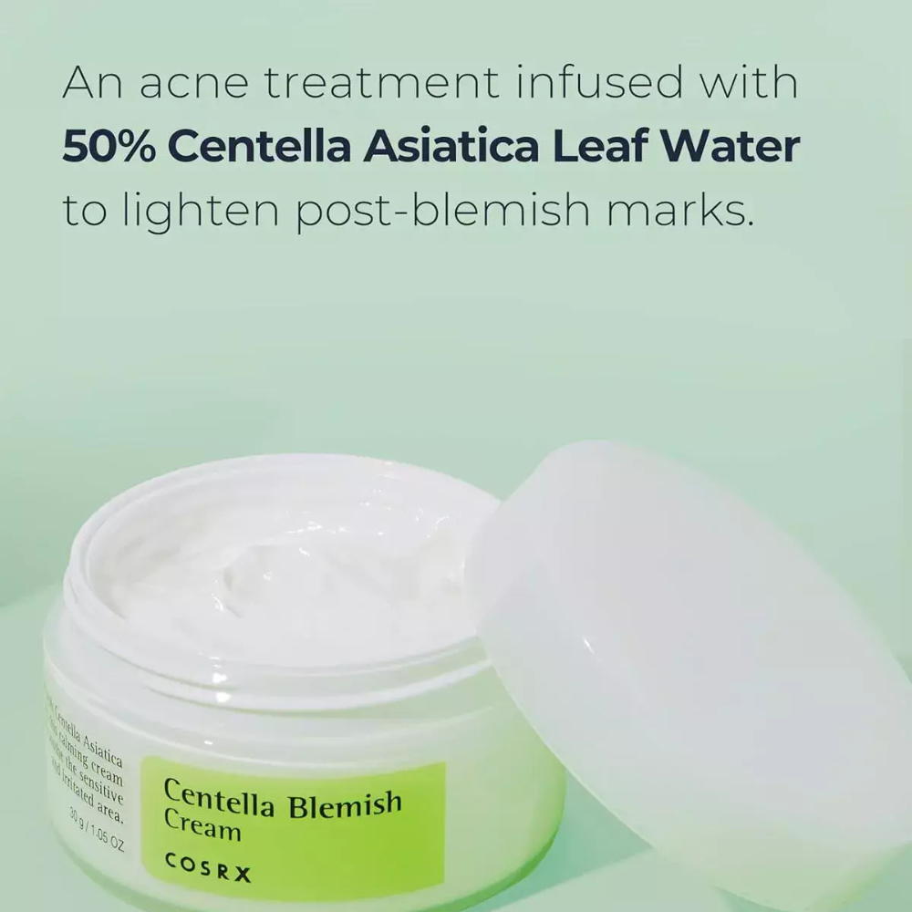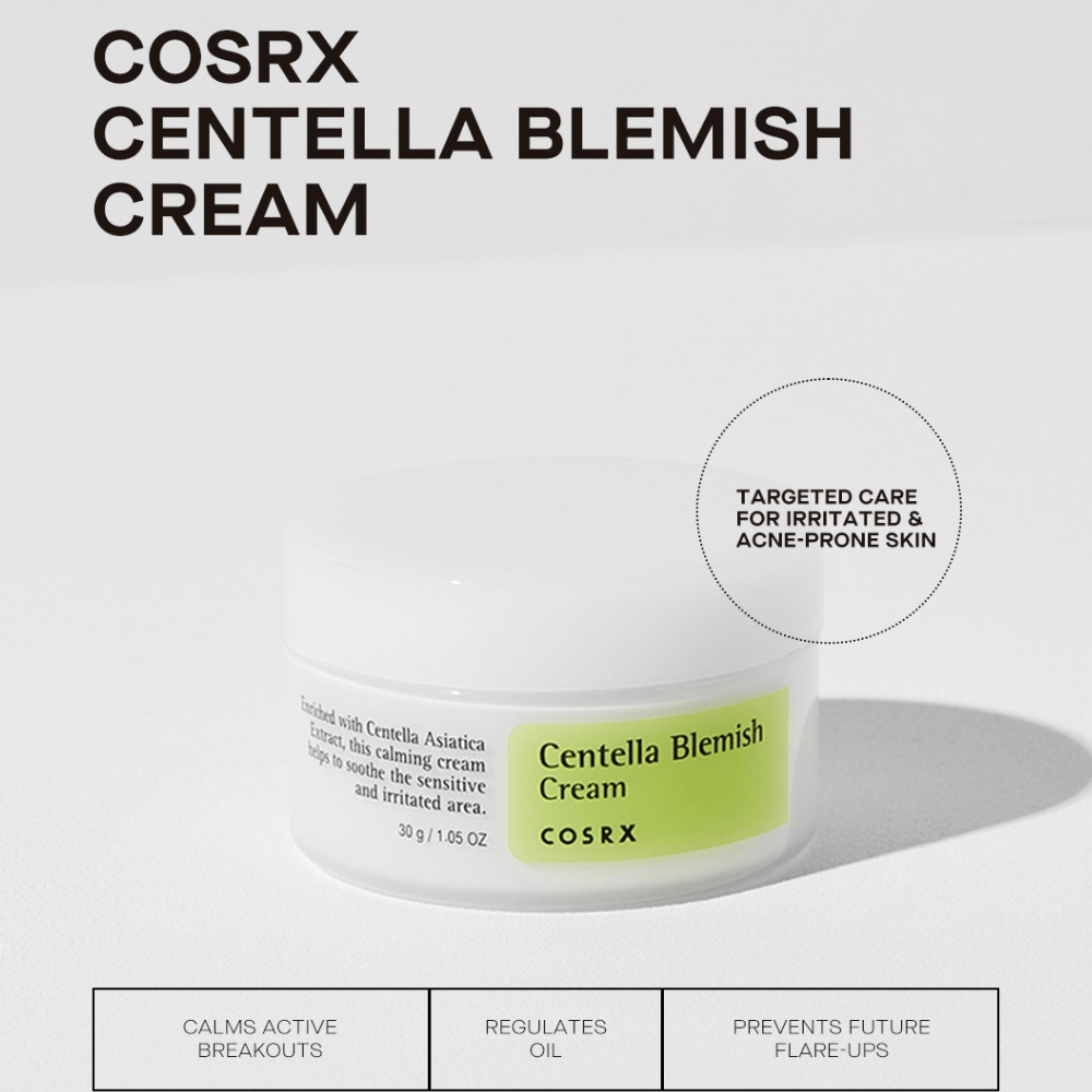 COSRX Centella Blemish Cream is a spot treatment designed to soothe irritated, inflamed skin while helping to fade the red and dark marks left behind by breakouts. With its soft cream texture, it works as a calming layer to comfort sensitive skin and protect against further irritation.