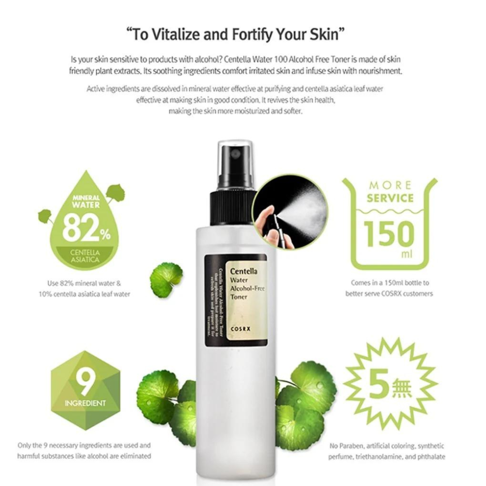 We suggest making COSRX Centella Water Alcohol-Free Toner a part of your daily skincare routine to maintain calm, hydrated skin.