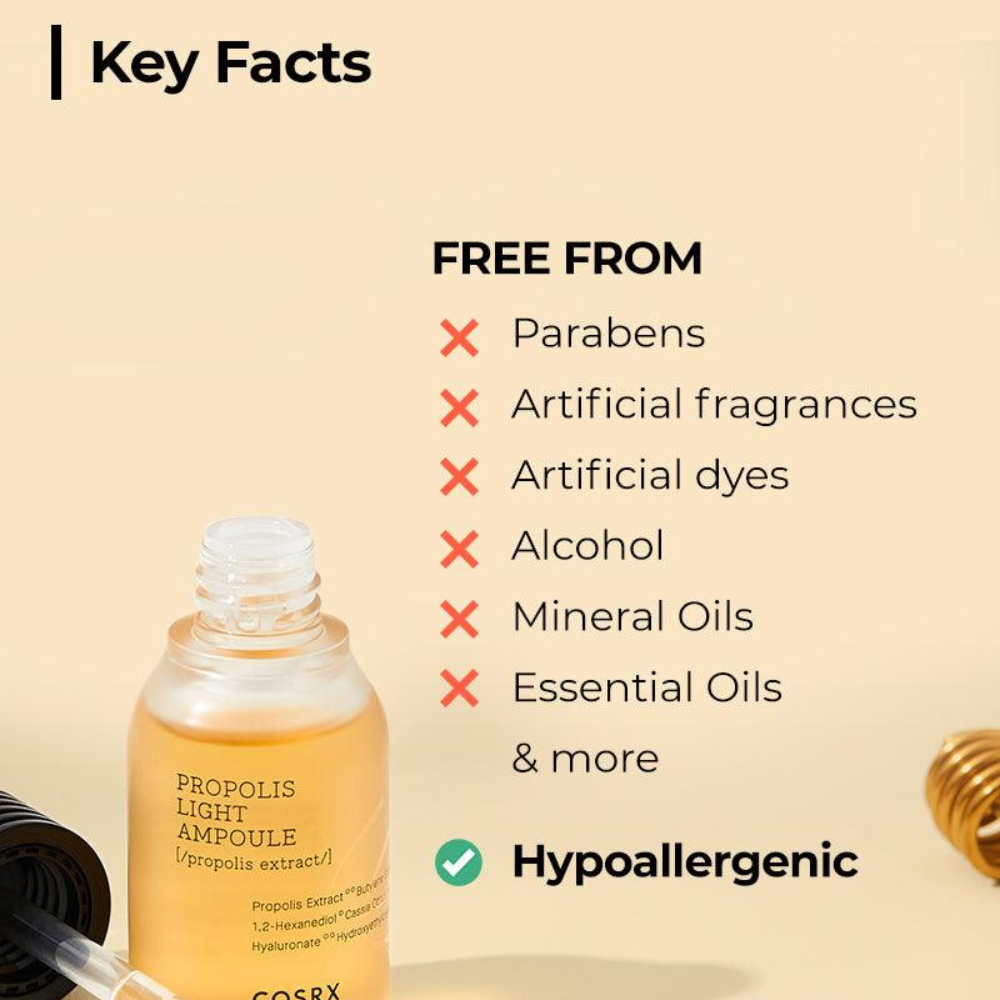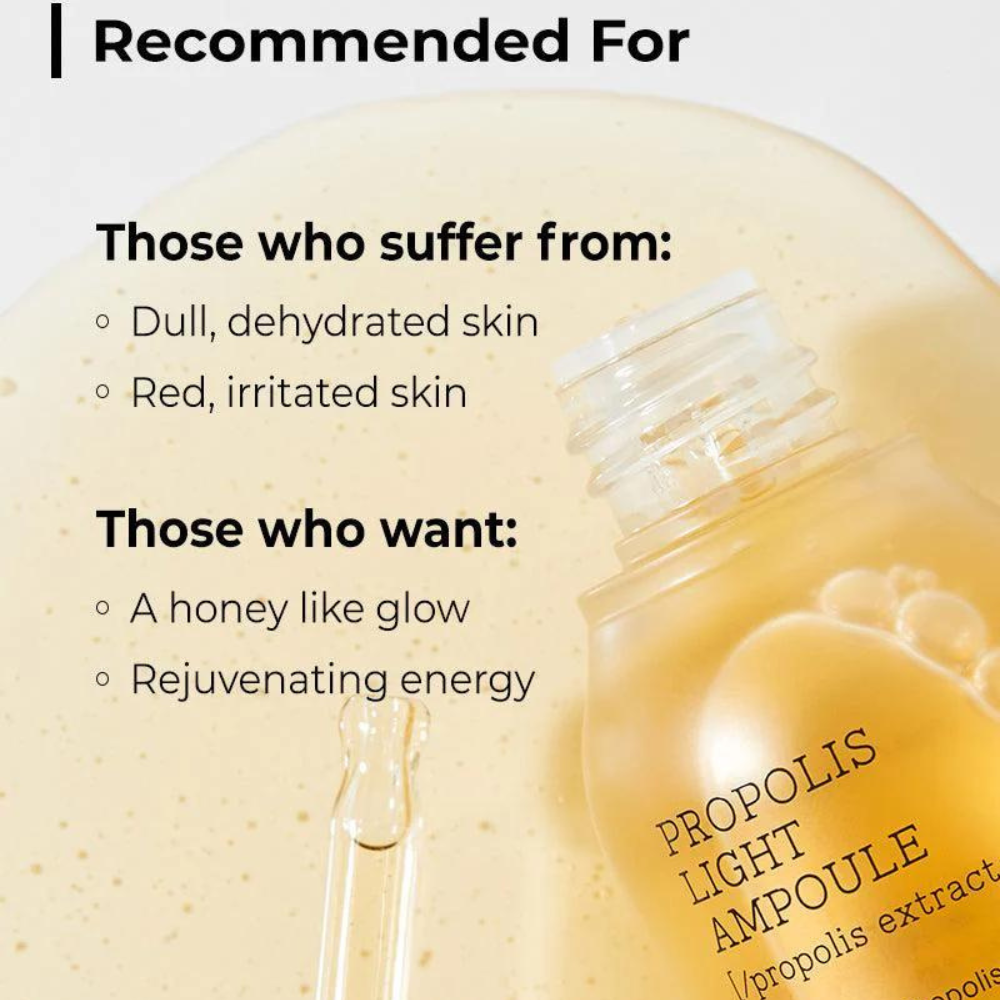 - Enriched with 83.3% Propolis Extract to improve skin texture and radiance.