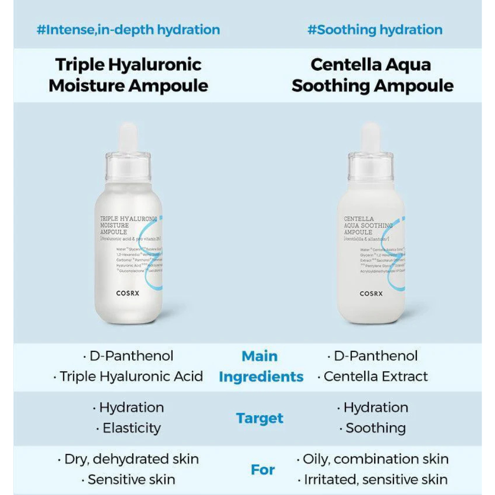 COSRX Hydrium Centella Aqua Soothing Ampoule is a lightweight hydrating solution specially formulated for sensitive and acne-prone skin.