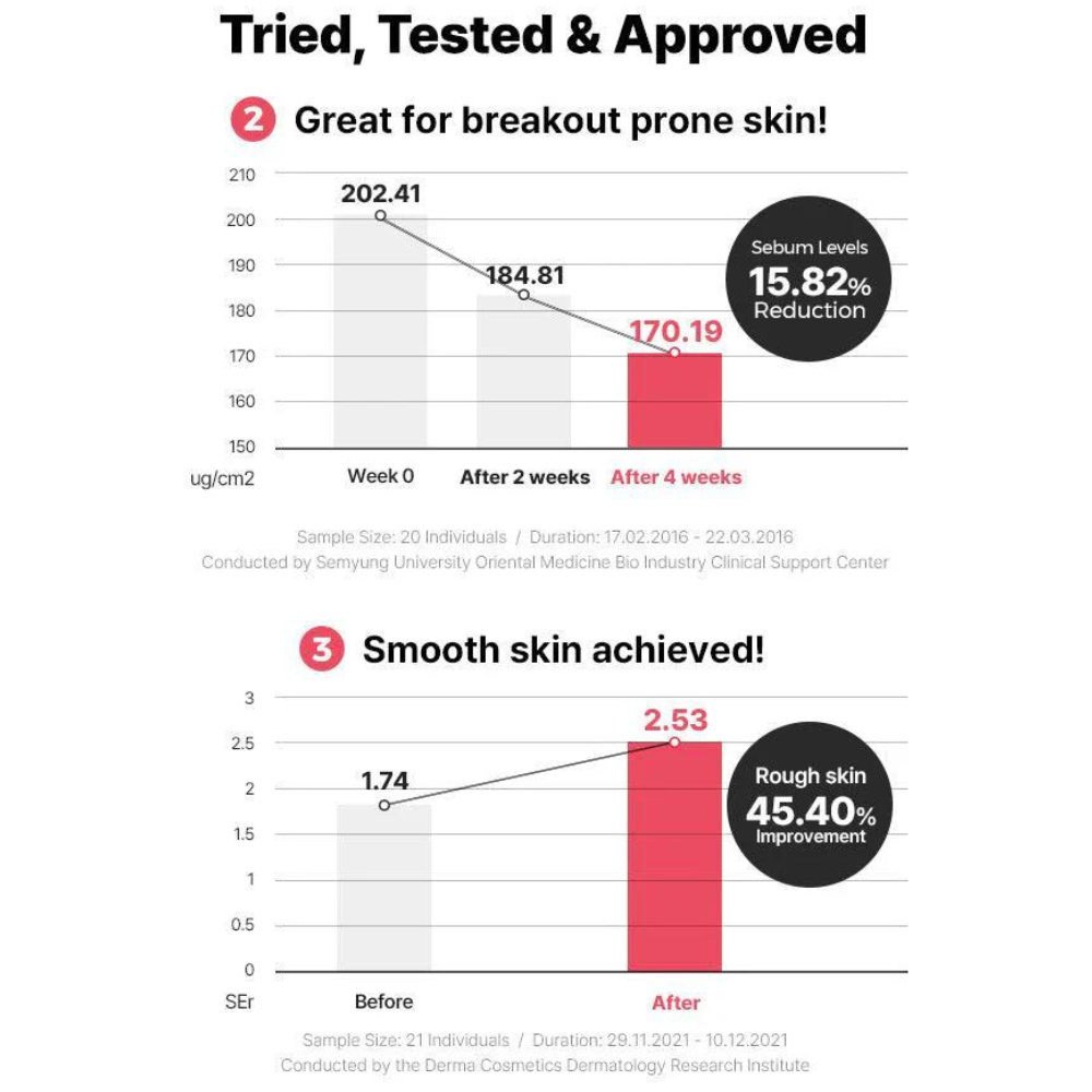 The formula not only deeply purifies the skin by removing dead skin cells and excess sebum but also helps to minimise the appearance of pores and reduce the frequency of breakouts.