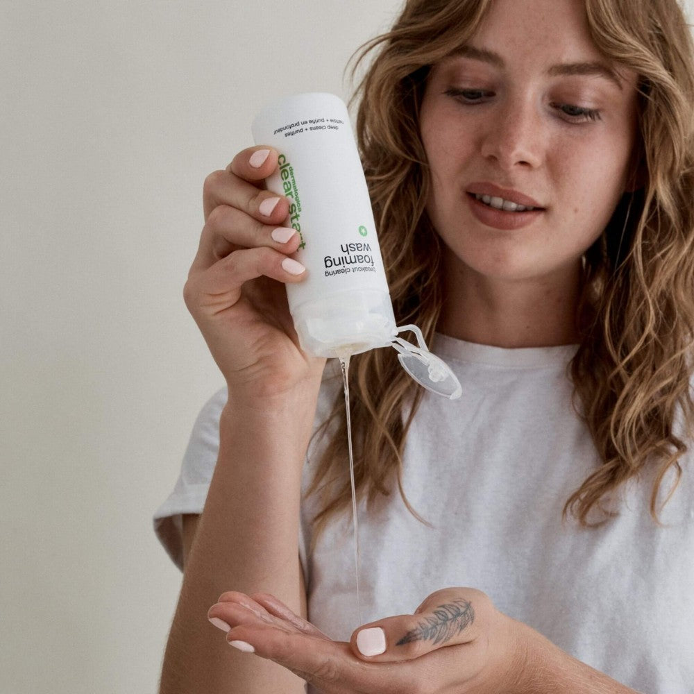 1. Gently work a small amount of Dermalogica Clear Start Breakout Clearing Foaming Wash into a lather.