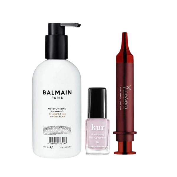 Transform your beauty routine with the Glam Affair Set, a luxurious collection designed to deliver head-to-toe glamour and rejuvenation. This set features the nourishing Balmain Moisturising Shampoo, formulated with argan oil and silk amino acids to restore life to colour and heat-damaged hair whilst providing essential protein, hydration, and moisture.