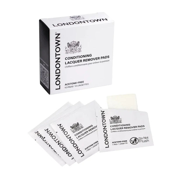 These individually-wrapped nail polish removal pads from Londontown are perfect for gently removing nail polish. Londontown Conditioning Lacquer Remover Pads are acetone-free and effortlessly remove lacquer.