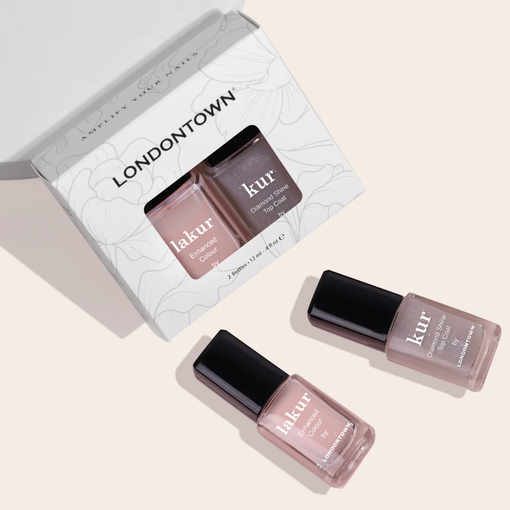 This elegant duo features the Invisible Crown polish, which gives nails a sheer wash of soft pink, and the Diamond Shine Top Coat, which seals in your polish to extend its wear whilst adding a diamond-dusted layer of shimmer that catches the light beautifully.