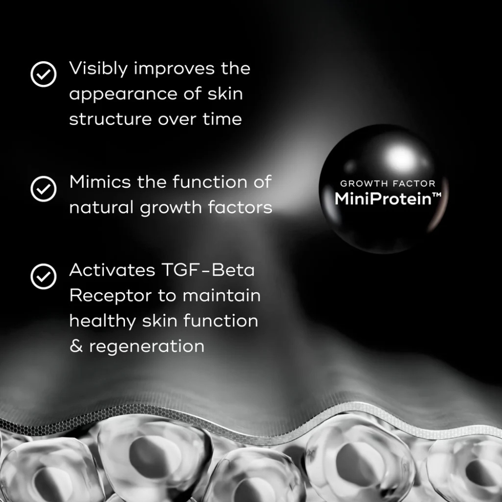 The serum's micro-molecular size ensures optimal penetration, targeting cells that need it most for rapid, visible results. Growth Factor MiniProtein™ works to visibly improve skin structure, while Expression Line MiniProtein™ helps to relax and smooth dynamic expression lines, delivering clinically proven results in just 10 minutes.