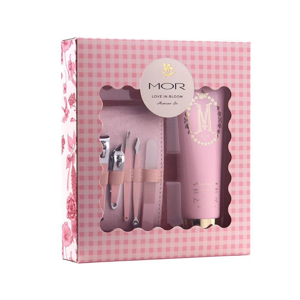 Discover the sensuous beauty of the MOR Heartfelt Blooms - Love in Bloom Manicure Set. This elegant set combines the lush Marshmallow Hand & Nail Cream with a professional 5-piece Manicure Set.