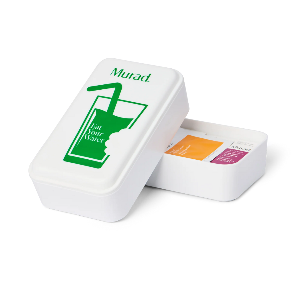 The star of the show is the adorable 'Snack Pack' Bento Box, perfect for packing your favourite healthy snacks to Eat Your Water throughout the day. But the real treat lies in the curated selection of Murad's best-selling, snack-sized skincare heroes.