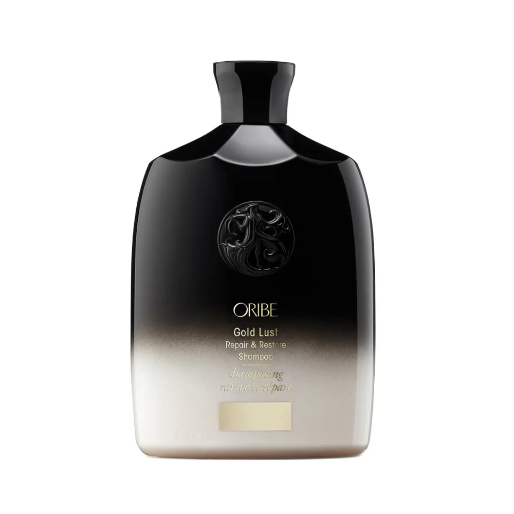 - Apply a small amount of Oribe Gold Lust Repair & Restore Shampoo to wet hair, gently massaging into scalp and through lengths.