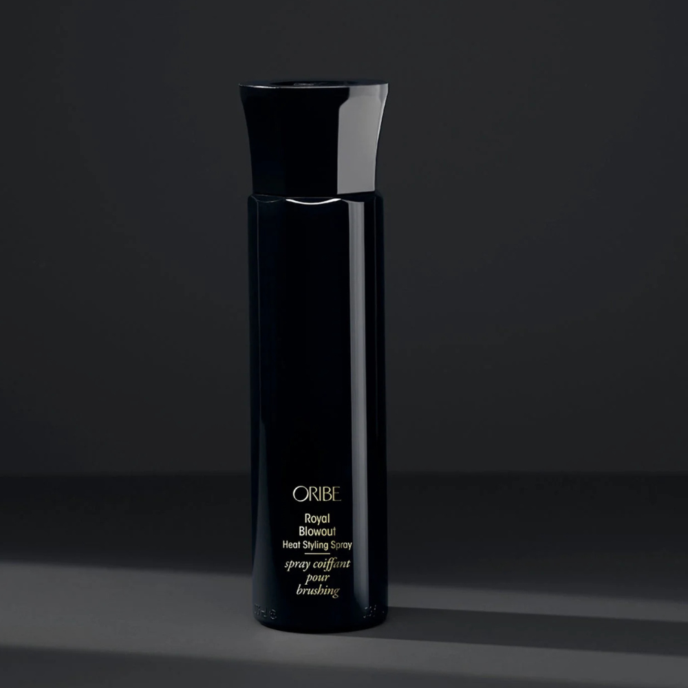 - Spray Oribe Royal Blowout evenly through damp hair from mid-lengths to ends.