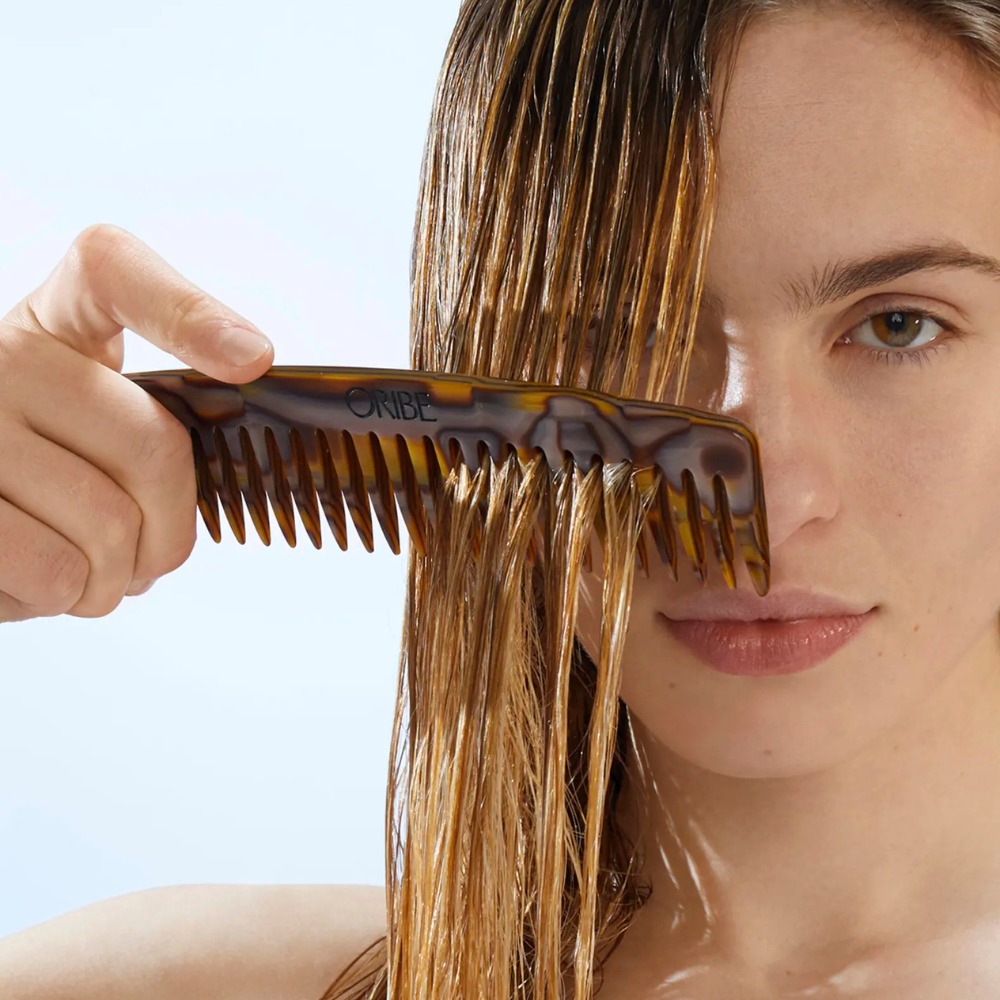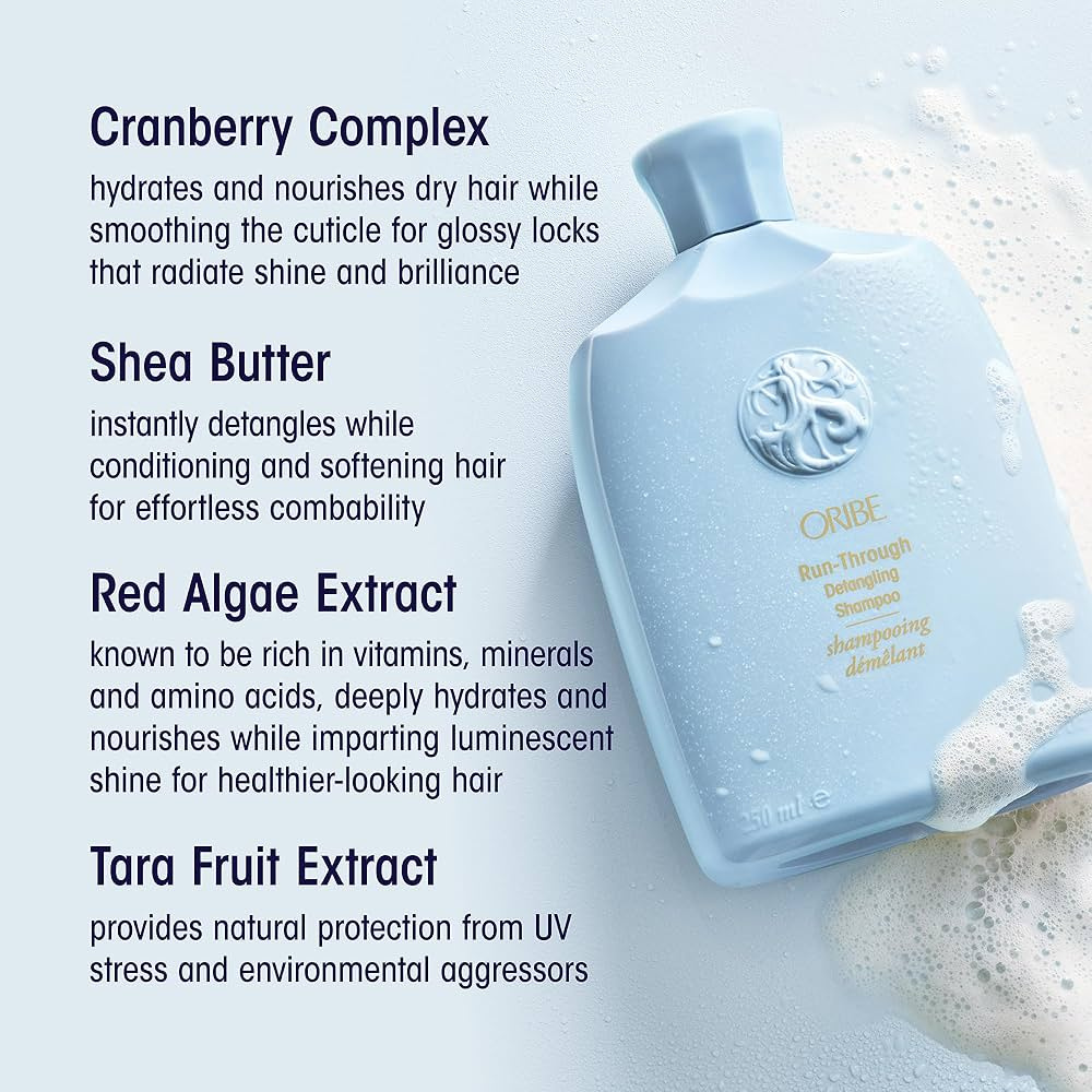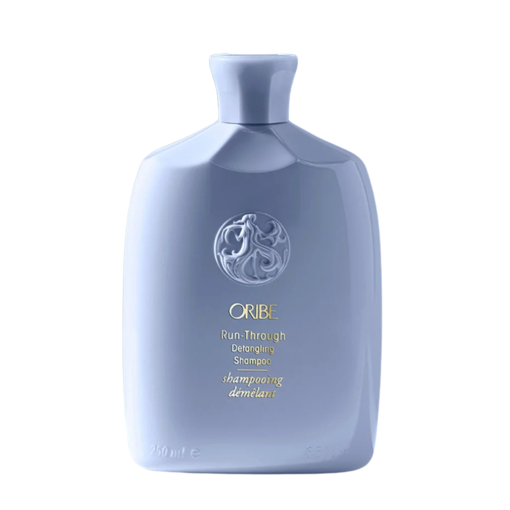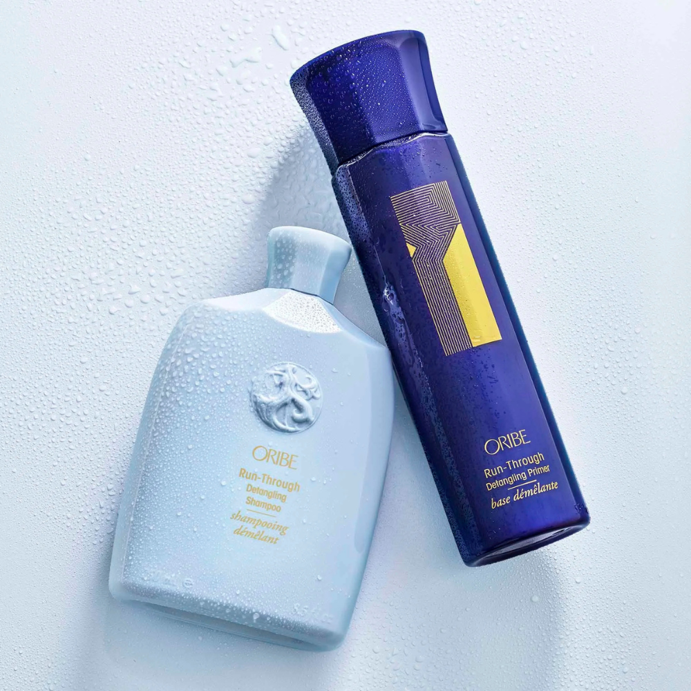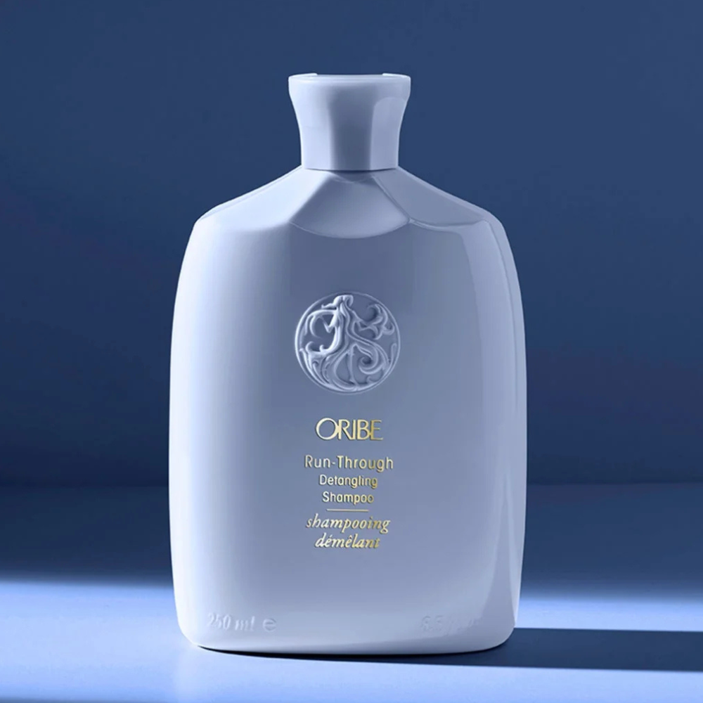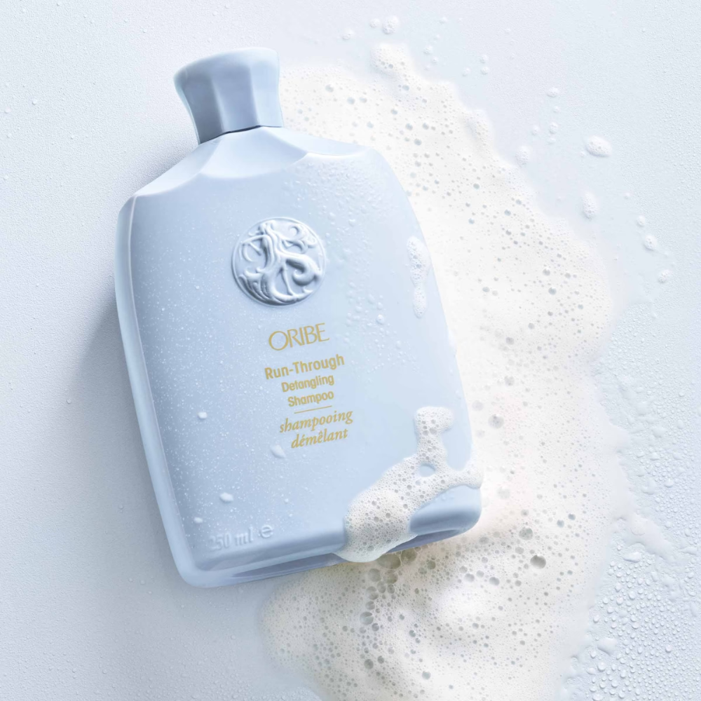 - Apply Oribe Run-Through Detangling Shampoo to wet hair and work into a rich lather.