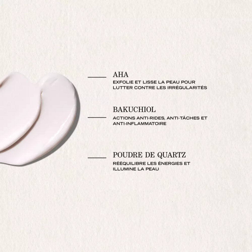 Enriched with bakuchiol, a gentle plant-based retinol alternative, alongside plant-derived AHAs and quartz powder, this innovative formula delivers anti-ageing and smoothing benefits for firmer skin day after day. The micro-smoothing action helps skin renew itself whilst nourishing deeply with shea butter for sublime, visibly more beautiful skin.