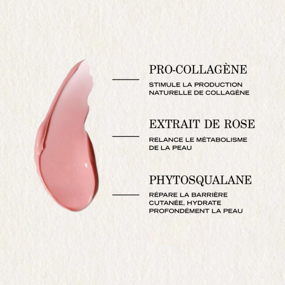 The innovative formula is enhanced with pink nacres for luminosity and phytosqualane derived from olive oil for deep nourishment. This powerful combination works to lift, plump, and redensify the skin while promoting a naturally radiant complexion.