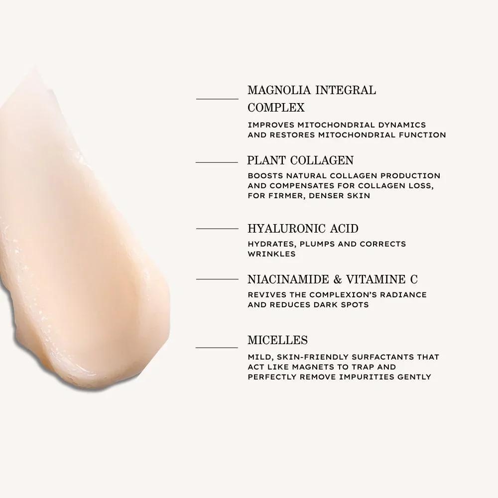Formulated with a full-spectrum complex combining magnolia, plant-based collagen, hyaluronic acids, vitamin C, and niacinamide, it purifies mature skin while delivering comfort and suppleness.