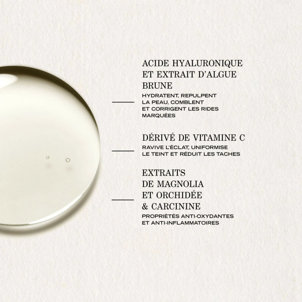 Aqua (Water), Propanediol, Isononyl Isononanoate, Limnanthes Alba (Meadowfoam) Seed Oil, Betaine, Coco-Caprylate/Caprate, Glycerin, Dextrin Palmitate, Pentylene Glycol, 1,2-Hexanediol, Butyrospermum Parkii (Shea) Butter, Magnolia Officinalis Bark Extract, Sodium Hyaluronate, Alaria Esculenta Extract, Tamarindus Indica Seed Gum, Orchid Extract, Xanthan Gum, Caprylic/Capric Triglyceride, Tocopheryl Acetate, Oligopeptide-1, Tocopherol, Ascorbyl Tetraisopalmitate, Carbomer, Caprylyl Glycol, Trisodium Ethylenediamine Disuccinate, Decarboxy Carnosine HCL, Butylene Glycol, Acrylates/C10-30 Alkyl Acrylate Crosspolymer, Sodium Hydroxide, Amodimethicone, Parfum (Fragrance), Chlorphenesin, Glucose