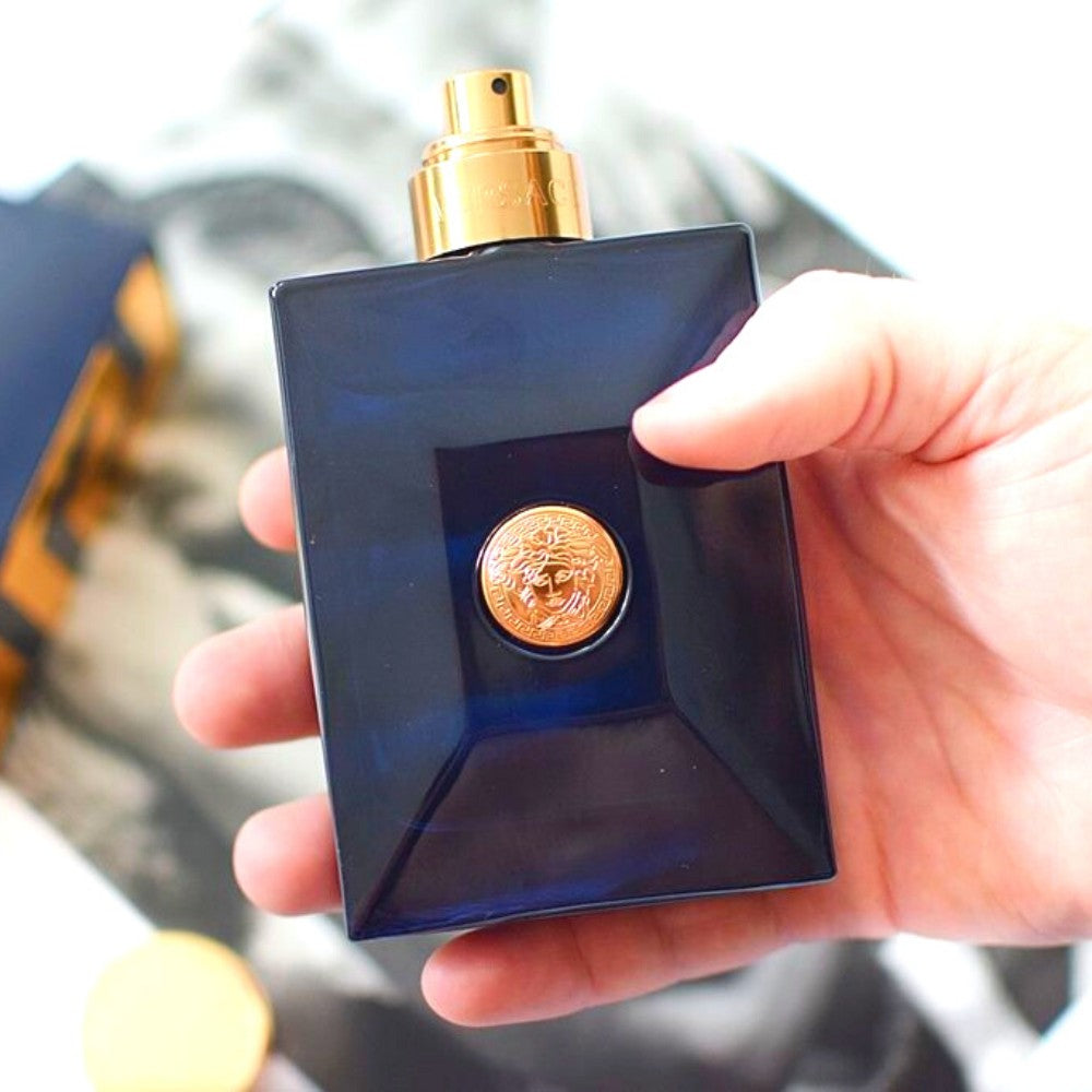 - Spritz Versace Dylan Blue Pour Homme Eau de Toilette on pulse points - wrists, neck, and ankles - for a fragrant aura that lasts all day long.