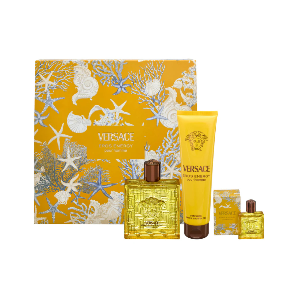 Versace Eros Energy Gift Set – bold citrus-aromatic fragrance for men with shower gel and travel spray.