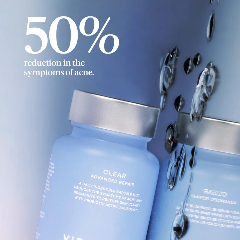 Powered by the probiotic active AcuSolve™ and an efficacious dose of omega-rich oils, vitamins, and minerals, Clear utilises unique 2-in-1 capsule technology. This allows optimal absorption of skin-clearing ingredients that couldn't be combined in a standard capsule format.
