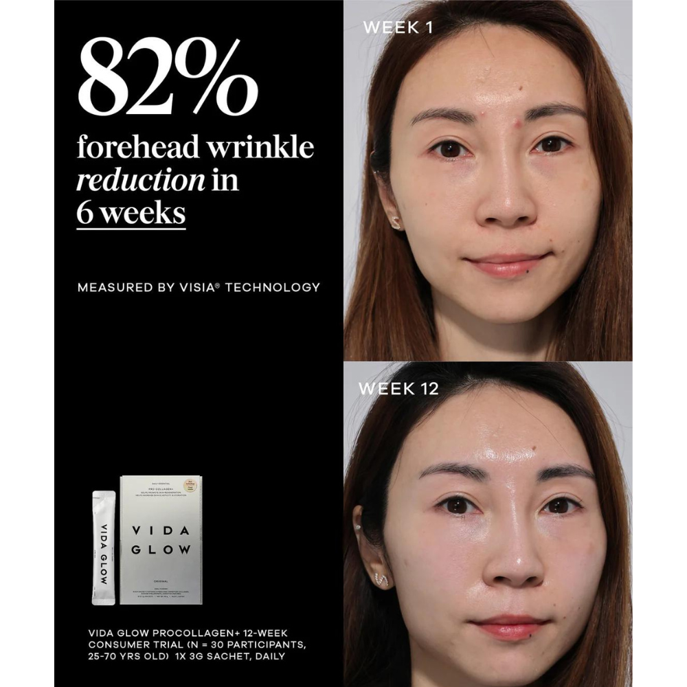 Vida Glow Pro Collagen+ is an innovative collagen complex designed for advanced skin aging concerns. As part of your daily routine, it targets deeper lines and significantly reduces wrinkle count. This cutting-edge formula combines hydrolysed marine collagen tripeptides, a clinically studied dose of hyaluronic acid, and digestive enzymes to accelerate results across skin texture, hydration, elasticity, and wrinkle reduction.